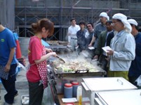 《当日・懇親会本番、BBQ大会スタート=スタッフBBQ焼き方担当、進行補助》