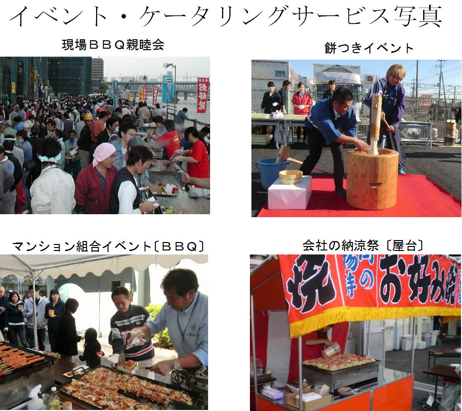 第1の柱は、大型建設現場内の「売店・食堂」の運営、そして各現場で実施されるBBQ大会、餅つき大会等、各種懇親会の企画運営サービス、そしてどこの現場にも欠かせない自動販売機の設置サービスになります。